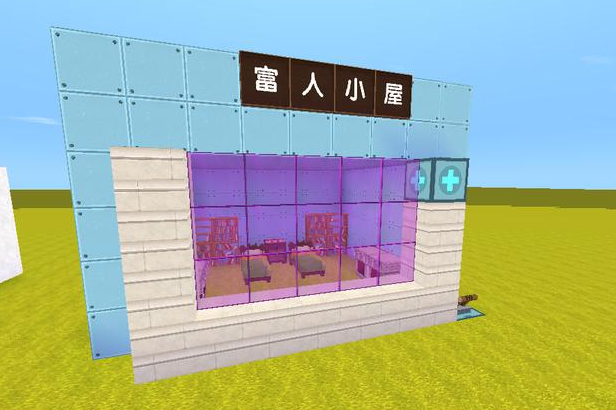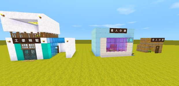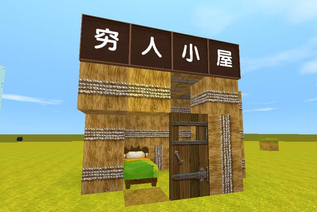 当进入穷人小屋后可以看到里面有个洞口,所以很多新手玩家根本不会选择使用茅草方块制作的小屋,不过富人小屋的大门非常智能化,整个墙体都是使用一种颜色的方块制作,
